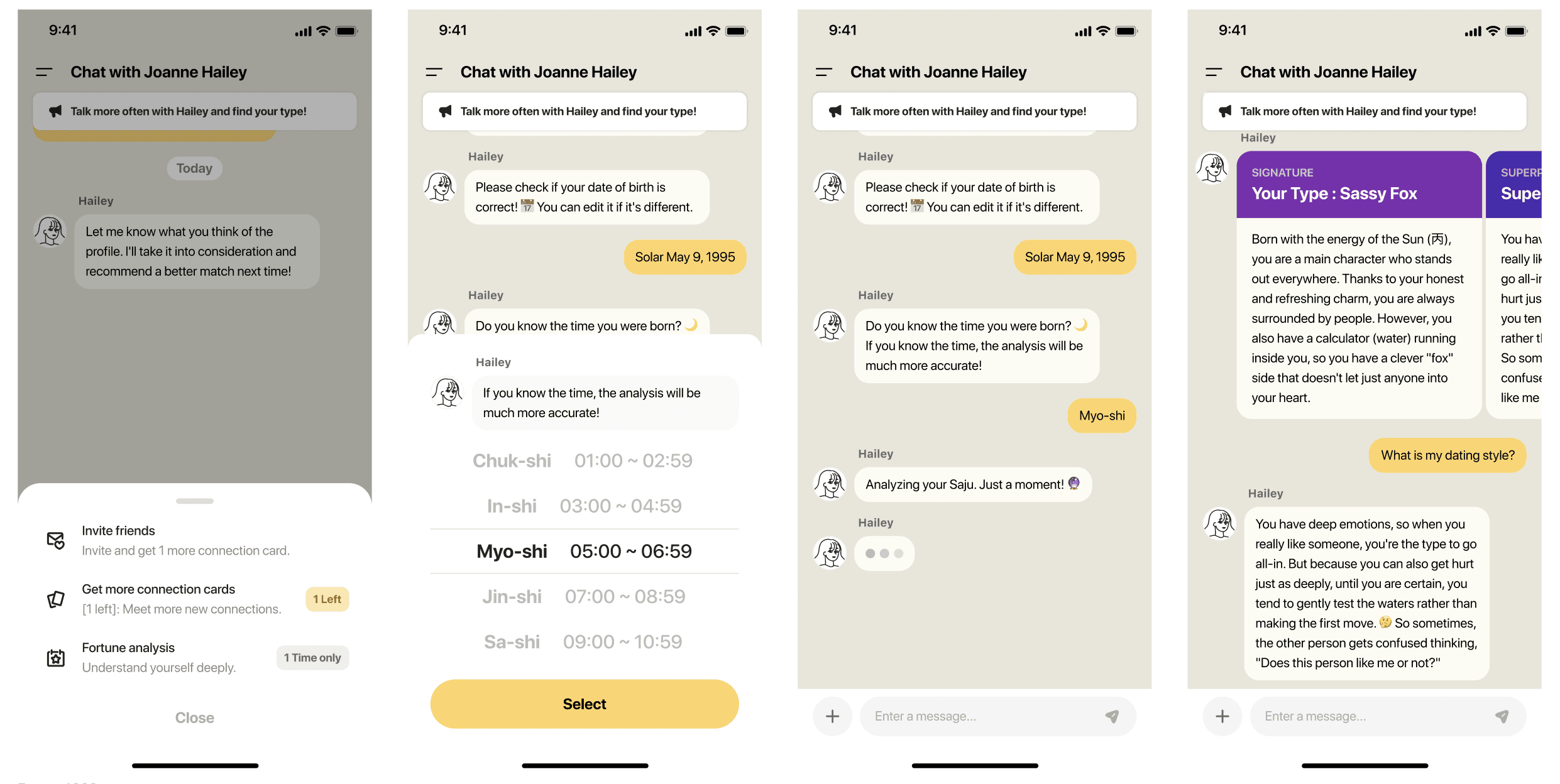 Joanne Hailey, a premium daily-matching dating app, recently launched a new "Saju" (Romance Luck/Fortune) feature to keep users engaged during waiting periods. However, because the app was still in its early growth stages, there was a significant brand risk: focusing too heavily on "Saju" could mislead audiences into thinking we were a mystical fortune-telling service rather than a modern dating platform.