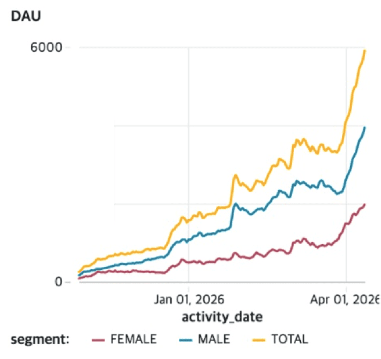 Viral Acquisition of Female Users: The lovely, cinematic narrative strongly resonated with the target demographic, resulting in a continuous upward trend in female user acquisition.