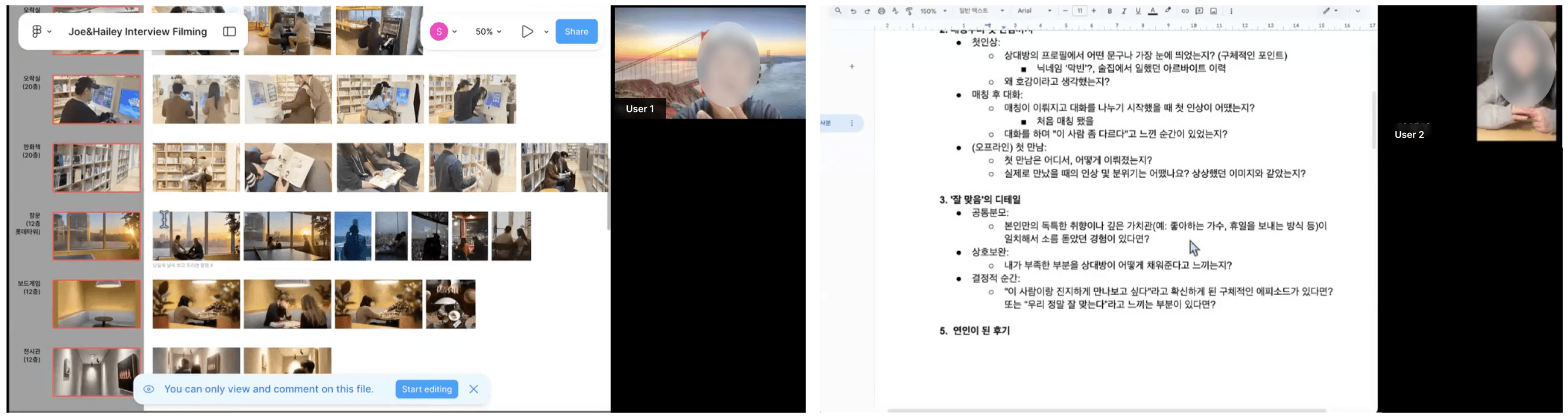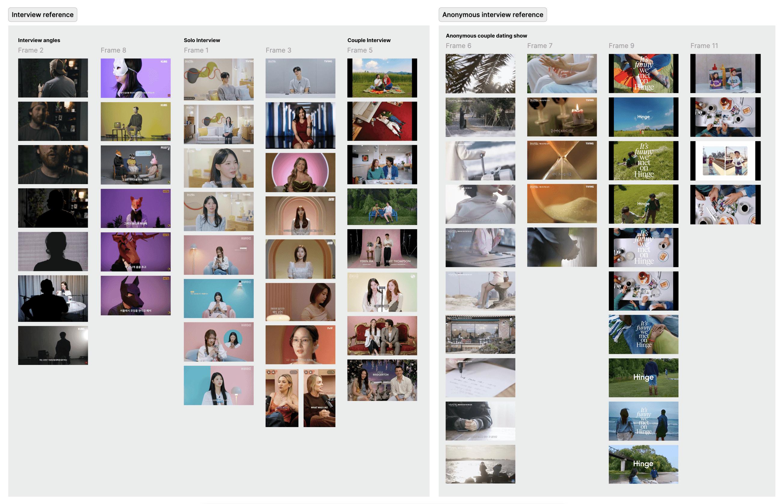 I extensively analyzed standard dating shows, but hiding faces instantly killed the romantic mood. To solve this, I studied various "anonymous interview" framing techniques. I drew heavy inspiration from the cinematic and intimate trailer of the GL (Girls' Love) dating show "Your Romance" (너의 연애). The goal was to maintain a dating-show vibe but elevate it with a cinematic, intimate aesthetic.